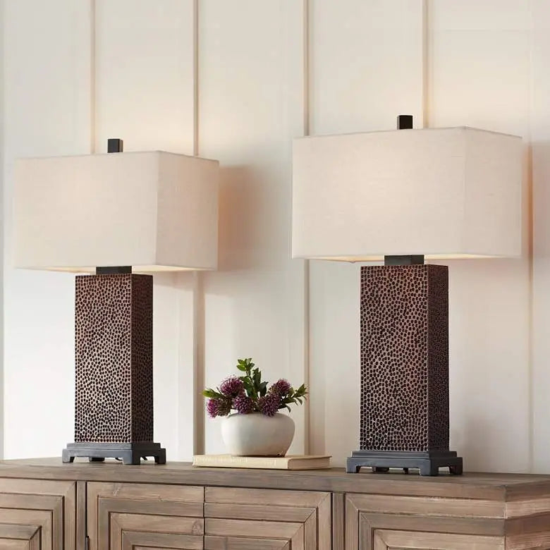 360 Lighting Caldwell 24 3/4" Hammered Bronze Table Lamps Set of 2
