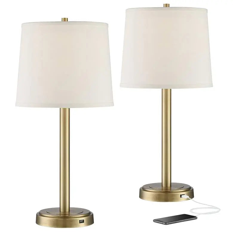 360 Lighting Camile 25" Brass Finish Metal USB Table Lamps Set of 2