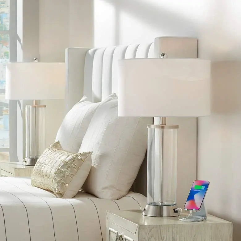 360 Lighting Watkin LED Glass Column USB and Outlet Table Lamps Set of 2