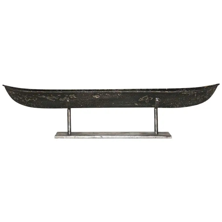 Product Details 30 1/4" wide x 7 1/4" deep x 5" high. Vintage style long boat sculpture on a stand....