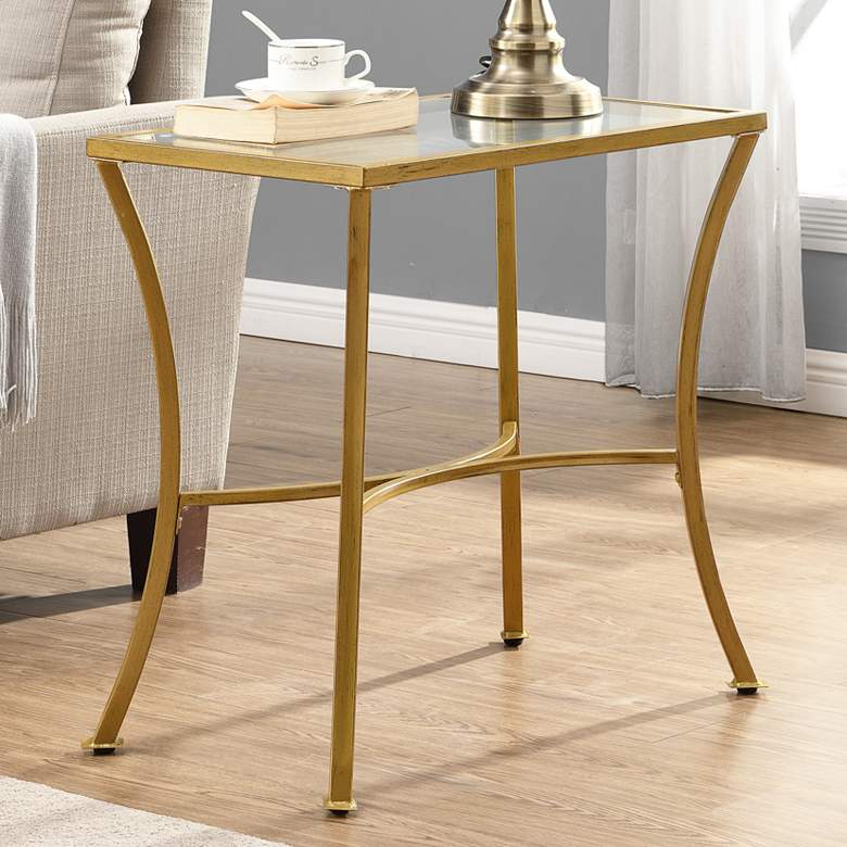 Alana 24" Wide Clear Glass Antique Gold Metal Accent Table