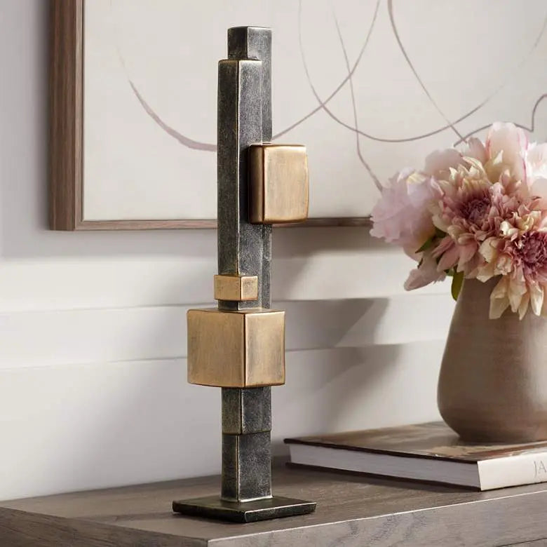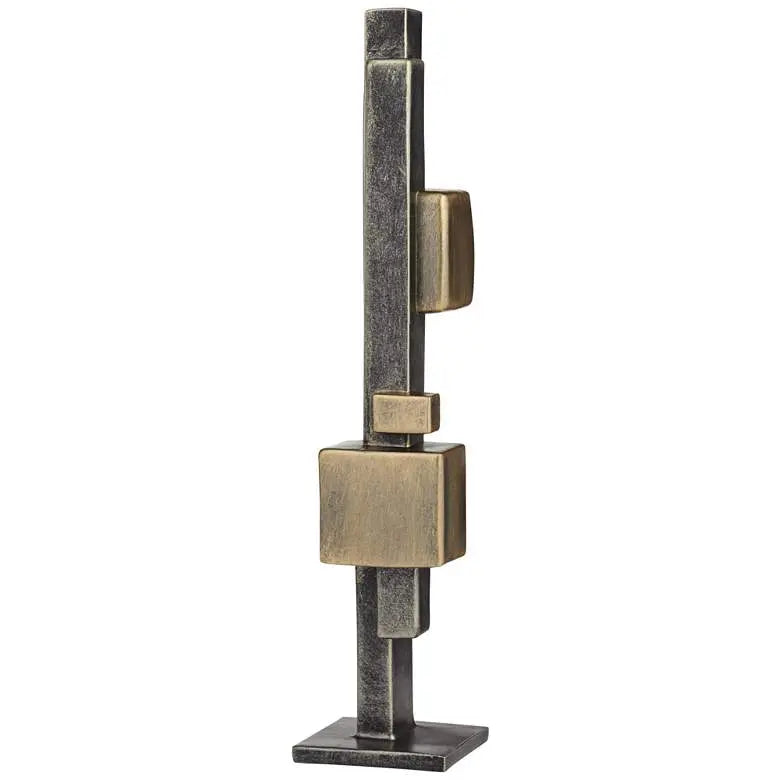Product Details 16 1/4" high x 3 1/2" wide x 3 1/2" deep. Modern abstract decorative sculpture. Matte antique brass...