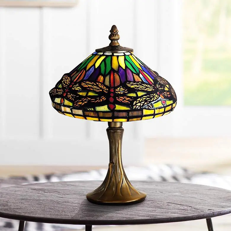 Dale Tiffany Dragonfly 11" High Brass Tiffany-Style Accent Lamp