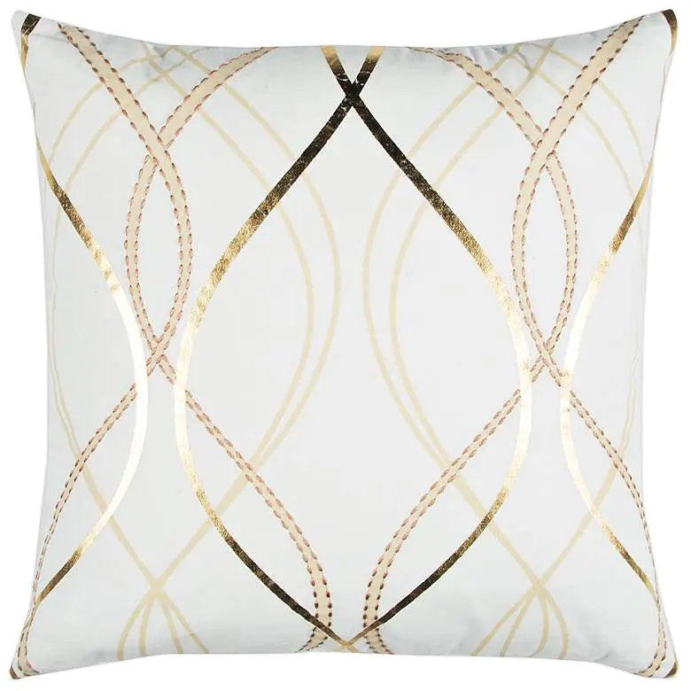 Doh White and Gold Geometric 20" Square Decorative Pillow