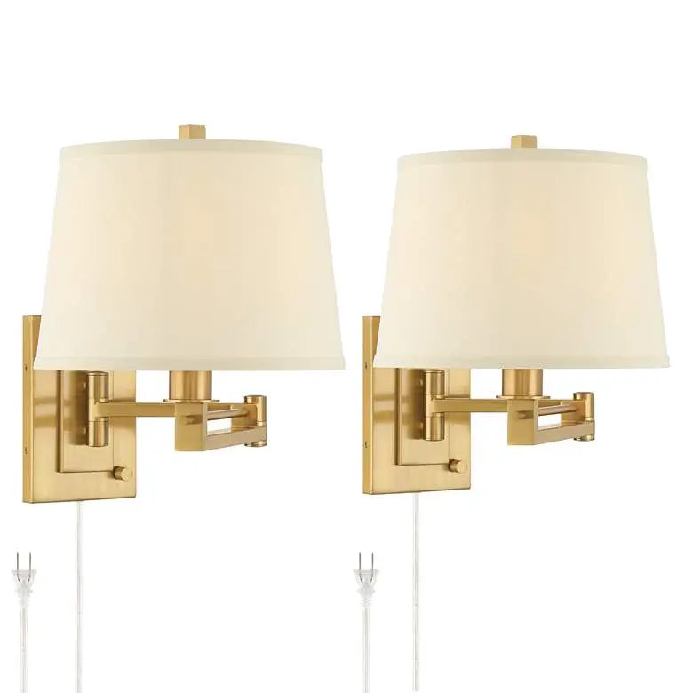 Easley 15" High Warm Gold Plug-In Swing Arm Wall Lamp Set of 2