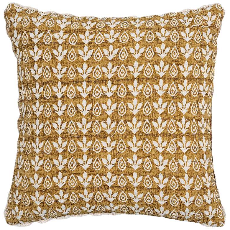 Harvest Mustard Yellow Printed Cotton 20" Accent Cushion