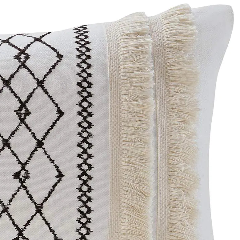 Product Details 20" wide x 12" high. Bea oblong decorative pillow with tassels by INK + IVY. Ivory embroidered geometric...