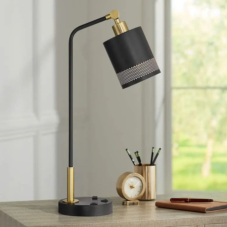 Possini Euro Keller 24" High Black and Brass Outlet and USB Desk Lamp