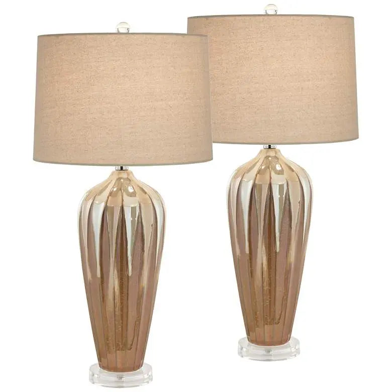 Possini Euro Loren Ivory Handcrafted Modern Ceramic Table Lamps Set of 2