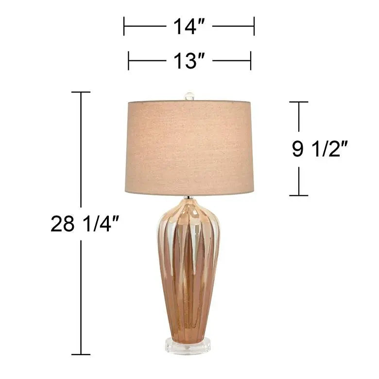 Product Details Set of 2 lamps. Each is 28 1/4" high overall. Shades are 13" across the top x 14"...