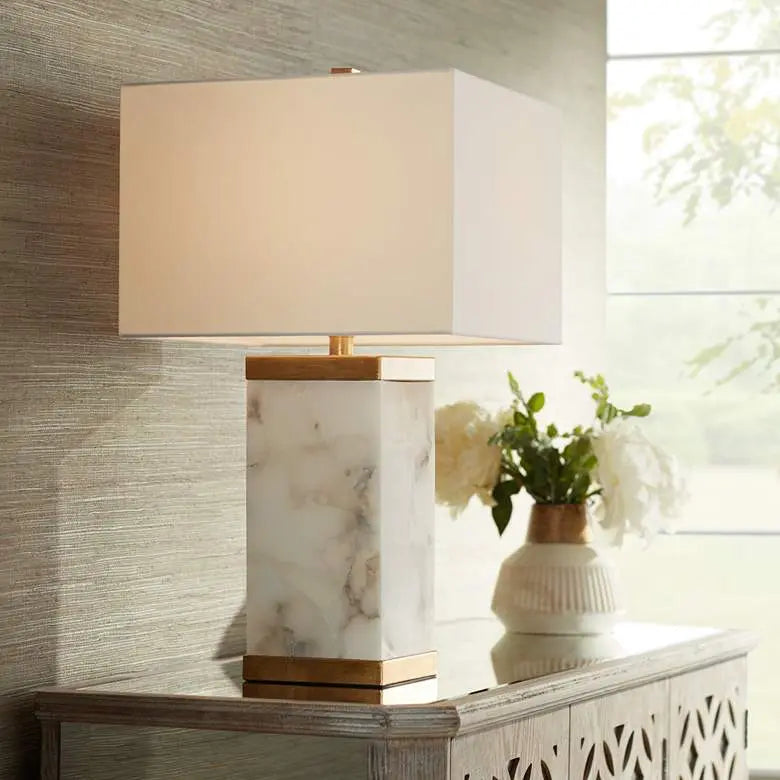 Possini Euro Mindy 24 3/4" Alabaster Table Lamp with Night Light