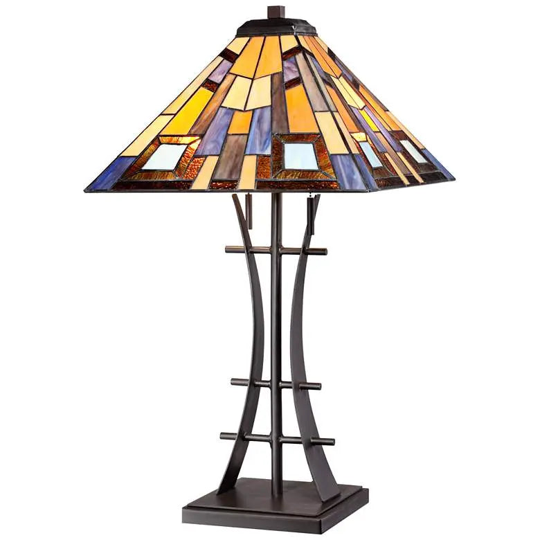 Robert Louis Tiffany Jewel Tone Tiffany-Style Art Glass Lamp with Dimmer