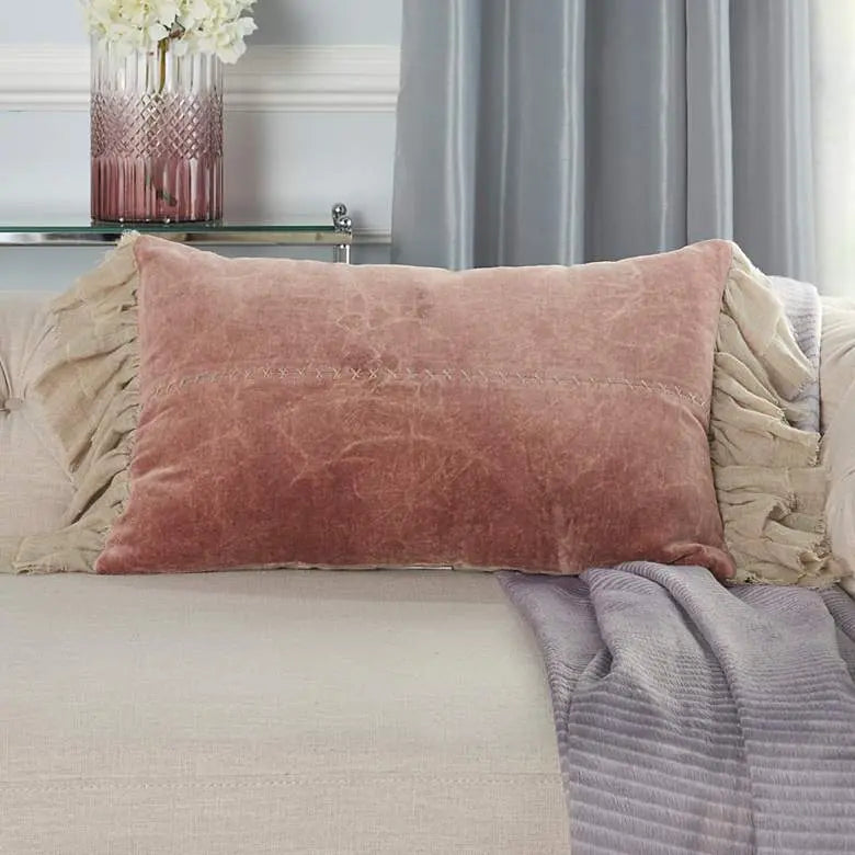 Sofia Blush Stitch Velvet Frills 22"x14" Throw Pillow