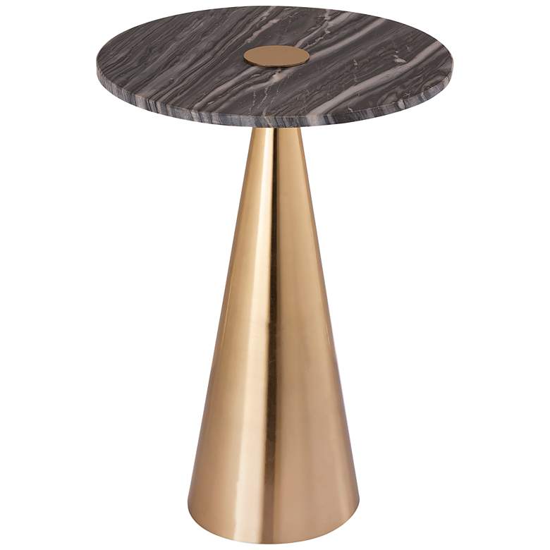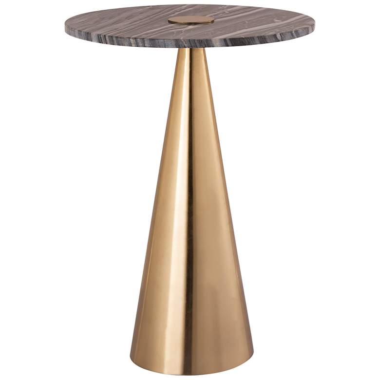 TOV Addyson 16" Wide Brushed Gold and Gray Marble Modern Side Table