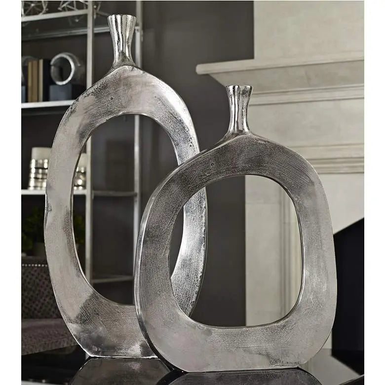 Product form Product Details Set of 2 modern vases. Large is 30" high x 14" wide x 4" deep. Small is 21... Uttermost Cierra Textured Nickel 2-Piece Modern Vase Set $624.45 Add to cart FREE AND FAST DELIVERYTake risks with FREE RETURNS within 30 days!CUSTOMERS RATE US WITH 4.9/5.0 ★★★★★ Reviews 0 reviews Share with your friends Share WhatsApp Deel X Pin it Messenger Email
