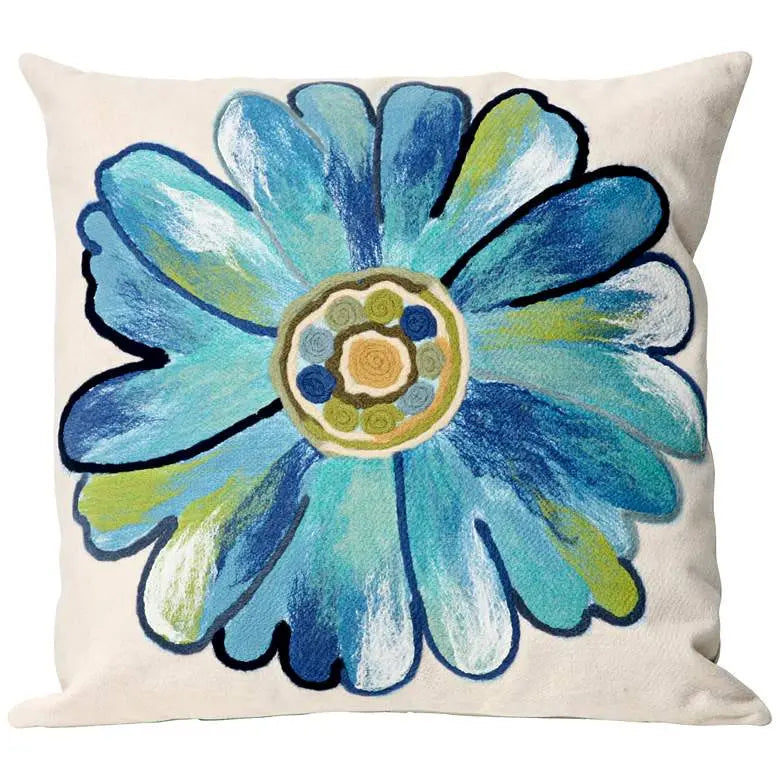 Visions III Daisy Aqua 20" Square Indoor-Outdoor Pillow